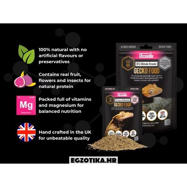 EarthPro-SFG hrana nije samo obrok; ona je proslava prirode i majstorstva. Hranite svog gekona sa sigurnošću, znajući da svaki zalogaj pruža najbolje u hranjivosti, okusu i skrbi.