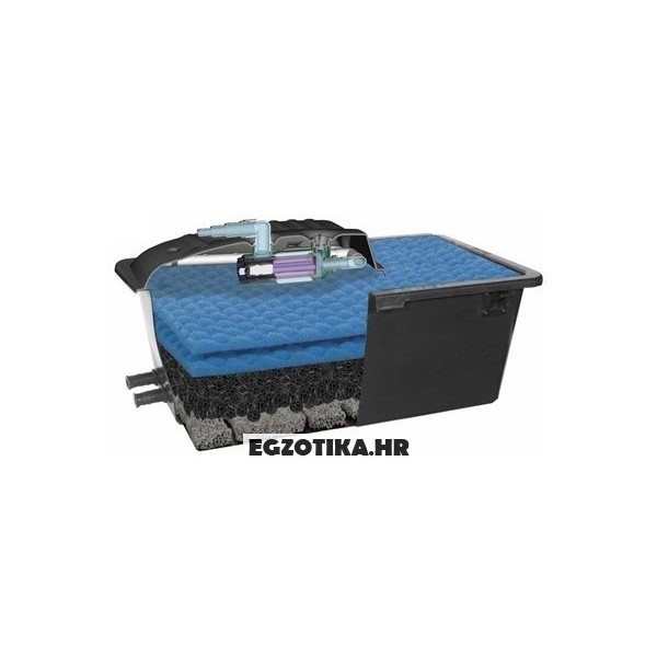 KLARJET set filtera osigurava učinkovitu mehaničku i biološku filtraciju i sterilizaciju vode. Gusta spužva uklanja čvrste nečistoće iz vode. Dušikovi spojevi otopljeni u vodi uspješno oksidiraju nitrifikacijske bakterije koje se razmnožavaju na površini bio-kuglica. Snažni UV sterilizator brzo rješava problem plutajućih algi i štetnih bakterija i protozoa.
