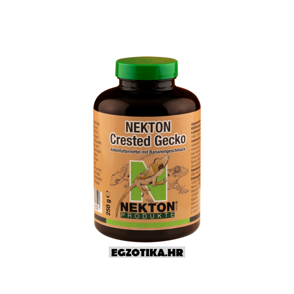 Prilikom hranjenja mora se dodatno paziti da se crested gekoni adekvatno opskrbe esencijalnim mikronutrijentima. NEKTON Crested Gecko sadrži 12 vitamina, 9 aminokiselina i 6 elemenata u tragovima. Proizvod također ima uravnotežen omjer kalcija i fosfora, što je posebno važno za zdravlje crested gekona.