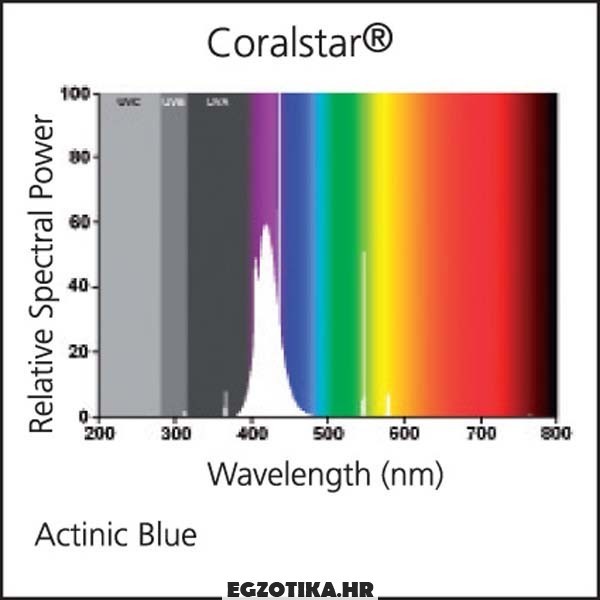 Reproducira svjetlosne uvjete koraljnih grebena putem actinićno plavog svjetla.