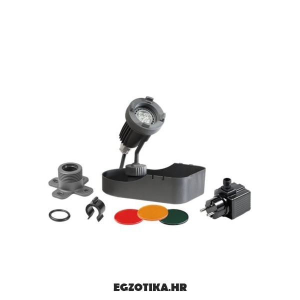 Pakiranje sadrži AC DC adapter i LED transformator (12 V 10VA IP44), 3 leće različitih boja.